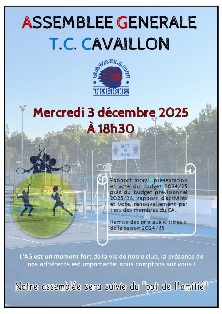 AG du TC.C. Post navigation Previous Previous post: Prochaine Saison tennistique 2025-26Next Next post: Mobilisons nous pour le Téléthon !